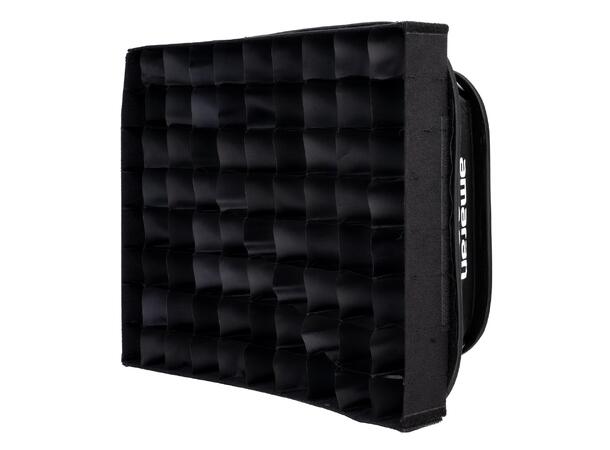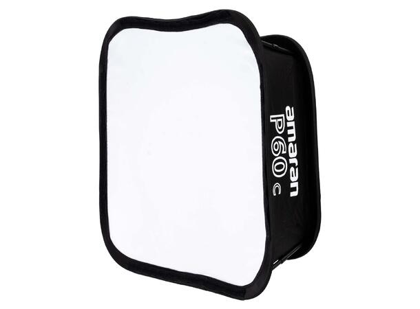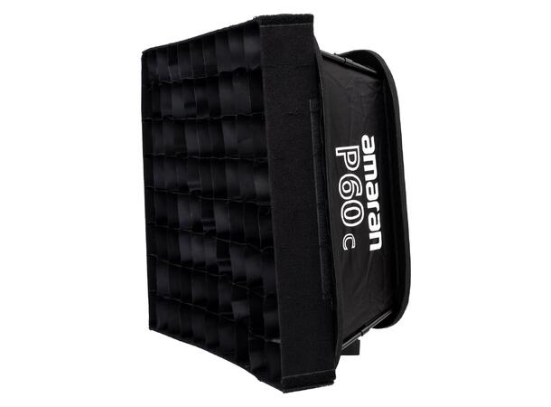 Med den unike designen til P60c kan brukerne feste den medfølgende sammenleggbare softboksen til panelets fire hjørner uten verktøy eller skruer. P60c inkluderer også et 45° grid for softboksen, som enkelt festes ved hjelp av borrelås.