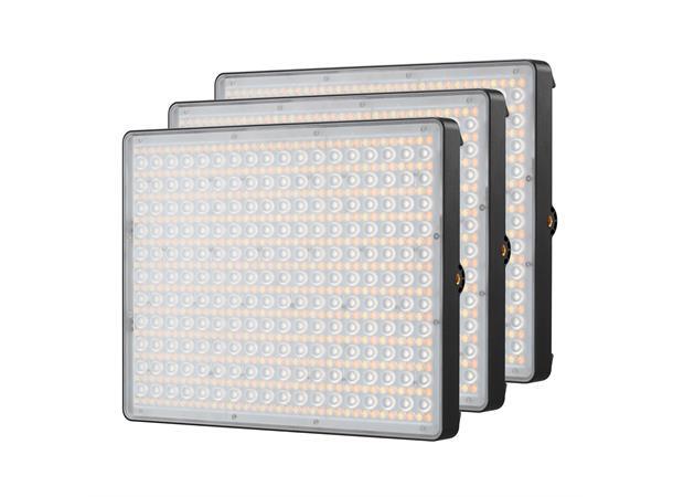 Med sitt optiske design gir panellyset en naturlig mellomstor til sterk effekt samtidig som den opprettholder muligheten til å bli myknet på mindre enn et minutt med den medfølgende sammenleggbare softboksen.