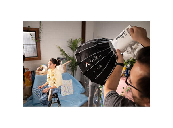 av lyset. Softboksen bruker en standard Bowens S-mount og konstruert
