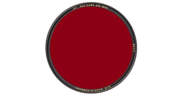 B+W Filter 091 Mørkerød Schott RG 630, 49mm MRC. Dette filteret brukes til å gi en surrealistisk effekt i landskaps- og arkitekturfotografering ved å gi en "storm/storm"-lignende effekt til skyer. Filteret er uunnværlig for toneseparasjon i stillebenfotografering og for gjengivelse av dokumenter som har blitt uleselige. Filterfaktor er 8.