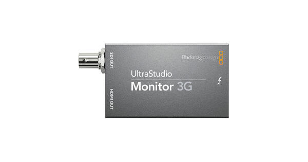 UltraStudio Monitor 3G-avspillingsenhet fra Blackmagic Design lar deg overvåke HDMI- eller 3G-SDI-videoen direkte gjennom datamaskinens Thunderbolt 3-utgangsport. Denne kompakte enheten støtter oppløsninger på opptil 1080p60 og lar deg redigere uten etterslep ved å bruke en storskjerm-TV, projektor eller skjerm med SDI (BNC) eller HDMI-inngang.