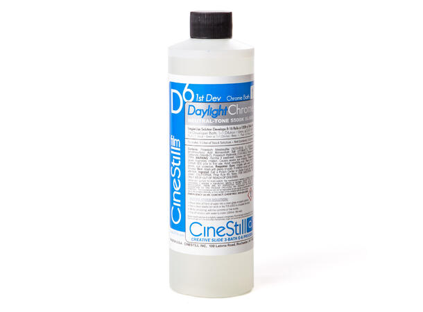 D6 “DaylightChrome” Neutral-tone 5500K 1st Developer is one of the developers of the Cs6 “Creative Slide” 3-Bath Process. It renders approximately 6+ stops of usable dynamic range, with brighter whites and moderately enhanced color saturation, just like conventional E6 processing. Daylight-balanced 5500K for neutral-tone slides in daylight or with electronic flash.