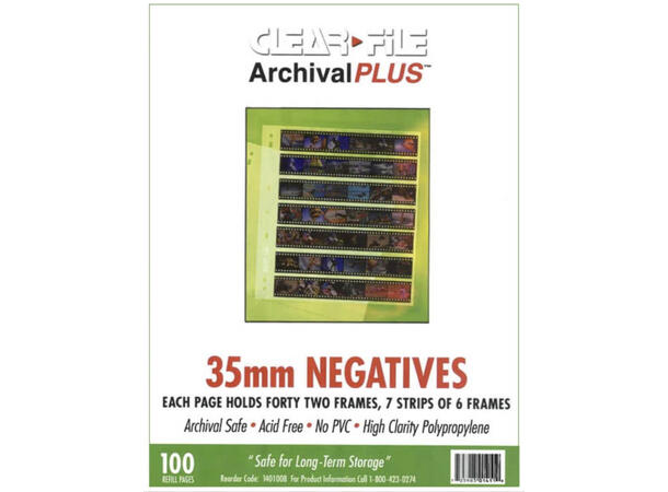 Polypropylenlommer for 135 film. 7 remser med 6 negativer. Sideåpning.