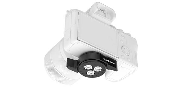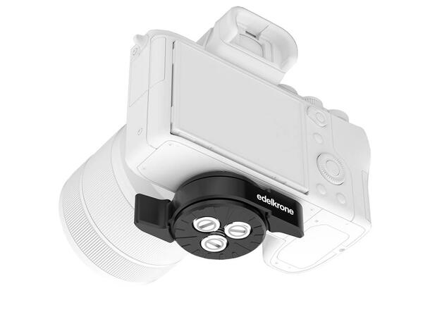 Edelkrone Quickrelease gjør det svært enkelt å ta kamera av og på stativ eller flytte det mellom edelkrone dingser. Skruen er giret så med en enkel håndbevegelse er den skrudd helt inn eller helt ut av kamera.