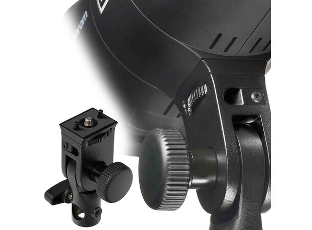Det vippbare stativfeste av metall har holdere for 7-8 mm paraplyaksler. Om nødvendig kan stativfeste enkelt fjernes fra blitsen, noe som gjør Elinchrom ONE enda mer kompakt.