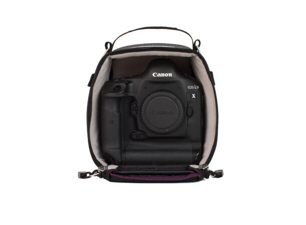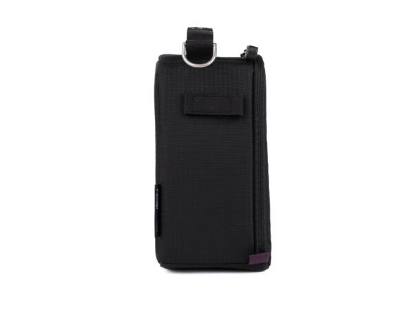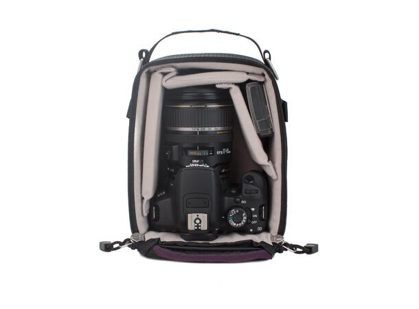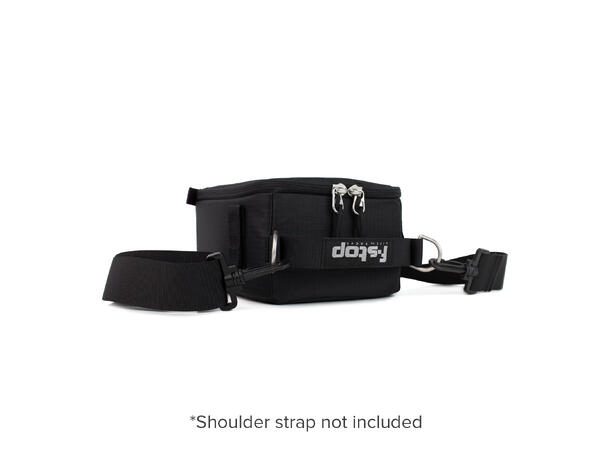 - Accepts optional shoulder strap via metal D-rings