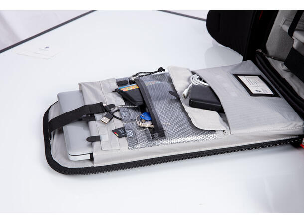 • Forbedret organisering og lagringsfunksjoner lagt til lommer, lokk og bakpanel.