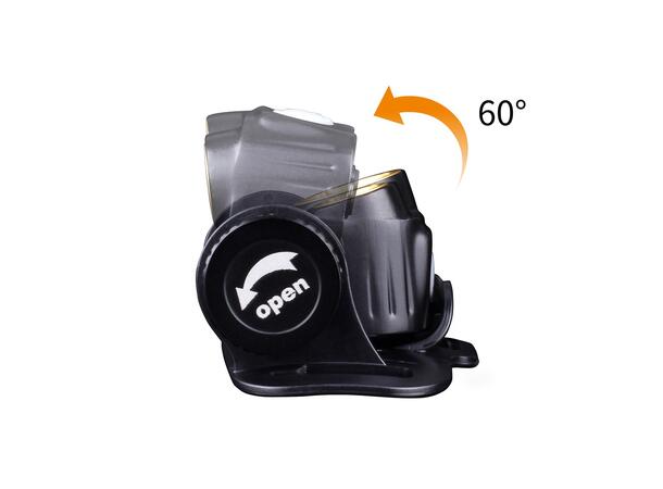1x ladbart 18650 batteri medfølger (evt kan 2xCR123 brukes)