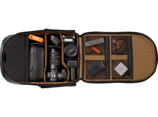 Bruk 1 liten kube, 2 små kuber, 1 stor kube eller en kombinasjon av kubene for å holde systemene dine bygget. Du kan sømløst bytte fra kamera til drone til hverdagslige gjenstander. Vi tenkte nøye gjennom tilgangen til utstyret ditt - enkel tilgang på toppen, ekstern hylse til bærbar PC (passer opptil 16 “ Macbook Pro), og full tilgang bak. Bruk det interne Articulating Ladder-systemet til å dele opp utstyret ditt eller fjern stigen helt. Ladder-systemet lar deg også utvide det øverste området av vesken. På innsiden av bakdøren er det 4 innvendige nettinglommer med glidelås for å organisere mindre gjenstander.