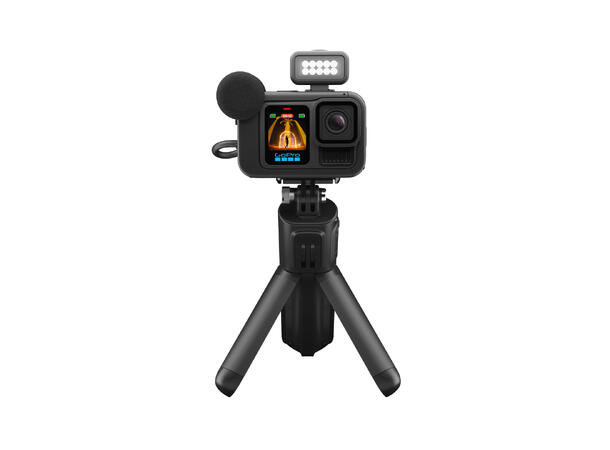 HERO13 Black Creator Edition er en alt-i-ett kraftpakke for innholdsopptak som gjør vlogging, filmskaping og live streaming enklere enn noensinne. Den er bygget rundt HERO13 Black, med førsteklasses 5.3K60 video og prisvinnende HyperSmooth 6.0 videostabilisering. Den er festet til et allsidig batterigrep som gir over 5 timers 4K opptakstid per lading (1) og har innebygde knapper som lar deg komfortabelt kontrollere kameraet under lange opptak. Dette komplette systemet inkluderer en retningsbestemt mikrofon som reduserer omgivelsesstøy, Bluetooth®-lyd for bruk med din trådløse mikrofon, en LED-lys, en Magnetic Latch Mount som gjør det enklere enn noensinne å bytte batterier, og flere alternativer for overføring av opptak, inkludert trådløst, kablet og med SD-kortet ditt (2). Det er også kompatibelt med HB-Series Lenses (2) som lar deg utvide dine opptaksmuligheter til å inkludere ultravidvinkelopptak, profesjonell anamorfisk film, nærbilder og bevegelsesuskarphetseffekter ved bruk av nøytrale tetthetsfiltre.