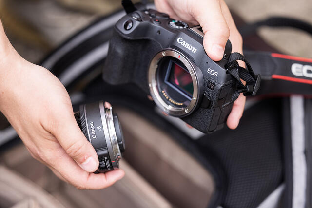 Fordi speilløse kameraer trenger ikke å ha plass til en speilmekanisme slik som speilreflekskameraer, kan kameraer som dette EOS R8 være mindre og mer kompakt. I tillegg RF-fatningens store diameter, kortere bakfokusavstand og større datagjennomstrømning har gjort det mulig for Canons utviklere å levere objektiver som er mer kompakte enn sine EF-motparter. Til gjengjeld med lik kvalitet, objektiver med bedre optisk ytelse og ekstra funksjoner, og objektiver som rett og slett ikke var mulige å lage før.