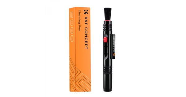 K&F Cleaning Pen har en myk børste i ene enden som trekkes inn i "pennen" for å beskyttes når den ikke er i bruk, og den andre enden har en rengjøringsflate som gjør det lettere å komme til helt ut i hjørnene på objektivet ditt enn det vil være med f.eks mikrofiberklut.
