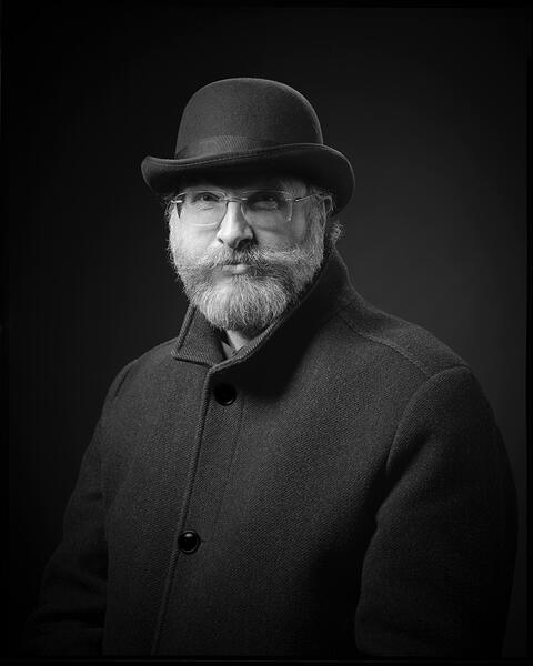 Bjørn Joachimsen er en erfaren norsk fotograf med lang karriere innen portrett- og studiofotografi, kjent for sin særegne bruk av lys og skygger. Han arbeider med analoge formater fra 35mm film til 8×10 tommers storformat, og har opparbeidet et solid renommé for presisjon og filmatisk uttrykk. Joachimsen har bred erfaring med svart-hvitt-fotografi og skaper bilder der skygger og kontraster får hovedrollen – et kjennetegn som gjør hans tilnærming perfekt for Film Noir-estetikk.