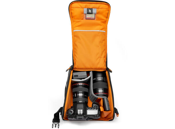 GearUp Creator Box Large II kameradeksel er den perfekte bærbare løsningen for å beskytte ditt speilløse kamerasett og tilbehør. Fleksible innvendige skillelinjer kan justeres for å sikre fullformats speilløse kameraer som Sony Alpha9 med et standard zoomobjektiv pluss 2-3 ekstra objektiver. En innerlomme rommer et minnekort og den ytre lommen oppbevarer ledninger, kabler, linsedeksler og tilbehør. Det nye inngangssystemet QuickDoor gir rask og enkel tilgang til utstyr, mens en låsestropp holder alt sikkert der du vil ha det. Velg mellom å bære arrangøren som den er eller i en større bag!