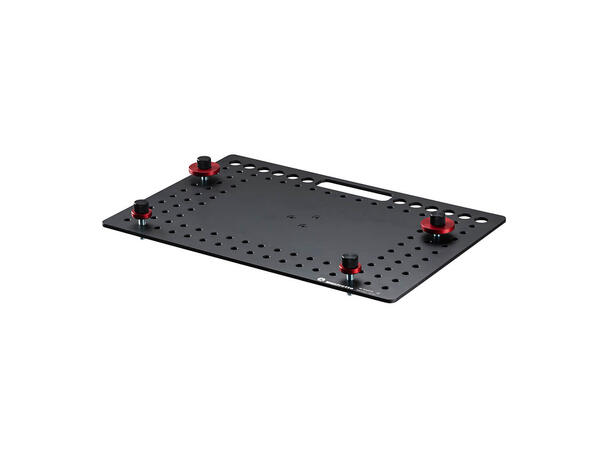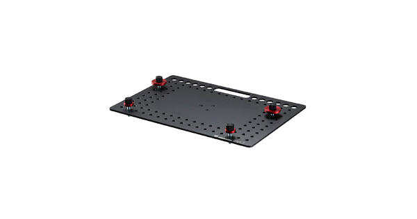 TetherGear nettbrettplate er laget av 4.8 mm tykt lettvektsaluminium og måler 46 cm x 31 cm. Den gir brukeren en ultrastabil plattform designet for å montere bærbare datamaskiner trygt og sikkert på toppen av grep og støtteutstyr som lysstativ, kamerastativ og støttearmer.