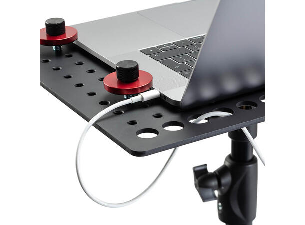 Påvirket av filmplatestilbehøret til film- og grepindustrien, har den en serie 3/8-tommers gjengede monteringshull på viktige steder, noe som betyr at bærbare datamaskiner i alle størrelser kan festes sikkert på plass ved hjelp av de medfølgende ikke- slipemonteringsutstyr. Hullkonfigurasjonen inkluderer også en nyttig kabelhåndteringsfunksjon for å forhindre at kabler kobles fra enheten i tilfelle brukeren ved et uhell drar i dem under fotografering.
