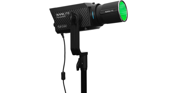 Nanlite Forza 60C RGB. Lampehodet veier bare 1,08 kg, men gir 12 810 Lux på en meter når reflektor er montert.