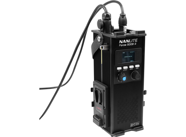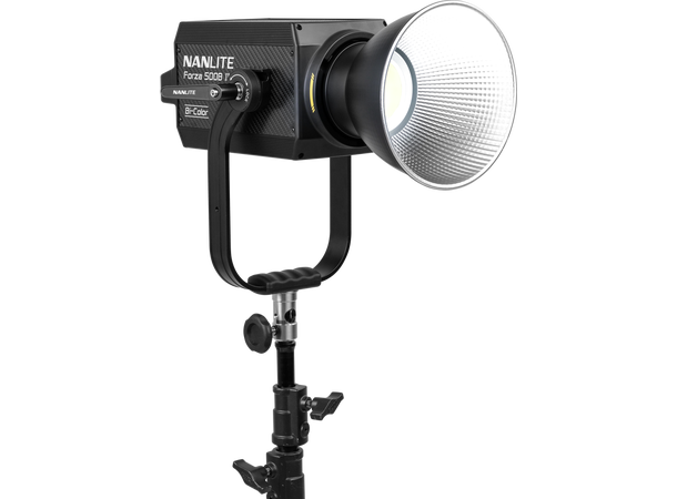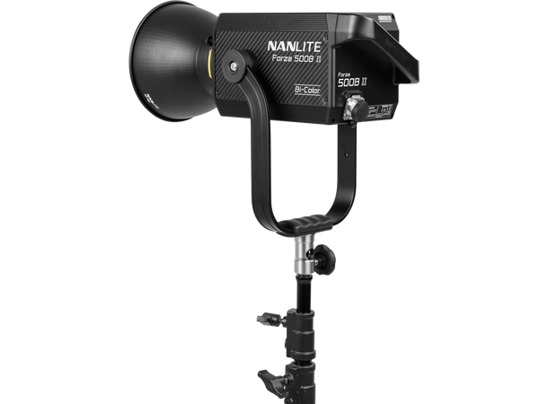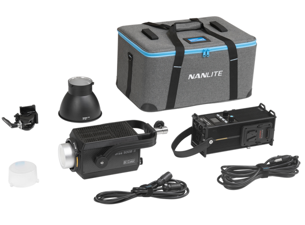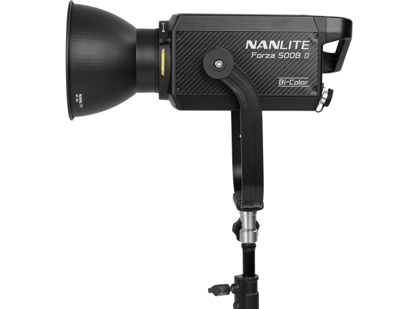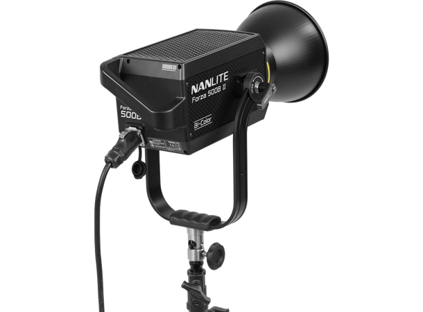 Nanlite Forza 500B II Bi-Color LED-spotlight gir alle de enestående fordelene til Forza 500 II - som det lette og kompakte hodet, redesignet kontrollenhet og eksepsjonelt kraftig utgang - og har også allsidigheten til et justerbart CCT-område på 2700K –6500K. Den ble bygget for profesjonell produksjon med holdbar konstruksjon, kontrollmuligheter for Bluetooth, 2.4G og DMX/RDM, og en beskyttet, frostet glass dekket COB. Den oppgraderte kontrollenheten kan kjøre effektivt på AC eller sidemonterte 26V eller 14,4V-14,8V V-monterte batterier (selges separat). Du kan ha full tillit til ytelsen siden 500B II gir svært fargenøyaktig lys, og den gir deg også muligheten til å justere grønn-til-magenta-forskyvningen med +/- 80, noe som er muliggjort av WW(RG) ) LED-kilde og lysblandingskammer.