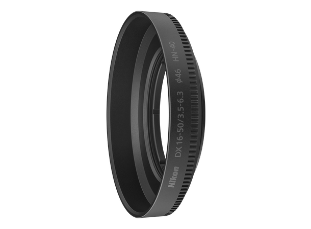 Solblender som skrus på og som spesifikt er utformet til å brukes med NIKKOR Z DX 16-50mm f/3.5-6.3 VR. Minimerer strølys og reduserer lysflekker.