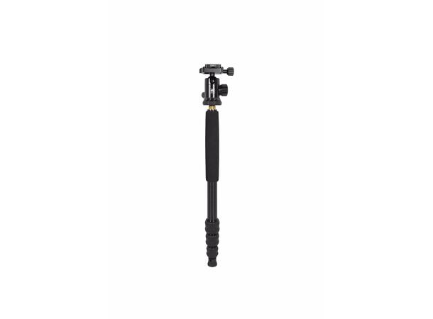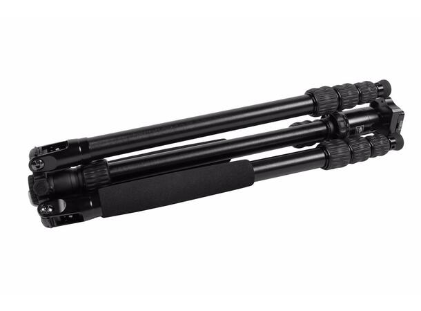 Stativet veier under 2kg, og er 46,5cm langt når det er slått sammen. Takken være at beina foldes 180 grader når det legges sammen blir det svært kompakt. Hvert bein har 4 seksjoner og festes med skrulåser. Beina har gummiføtter som ikke bare gjør at stativet ikke slik, men det beskytter også underlaget om det brukes innendørs.