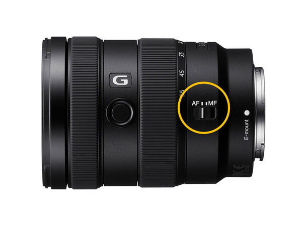 justerbar fokusknapp, AF/MF-modusbryter og Linear Response MF gir