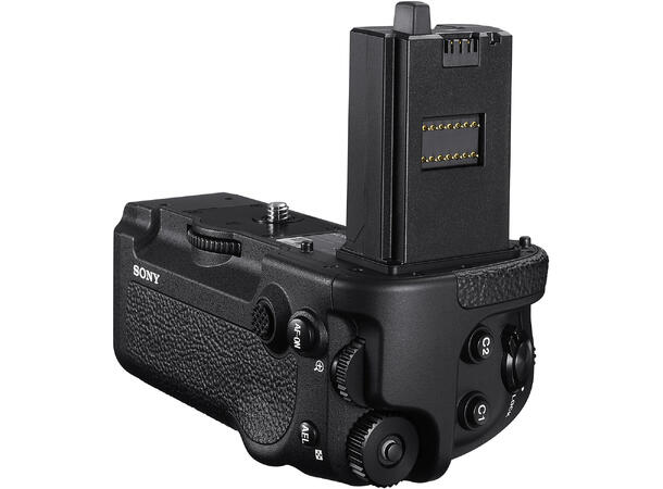 Det vertikale VG-C5-grepet har et batteriskyvedeksel som er enkelt å åpne, et stativbrakettspor, AF ON- / AEL- / C1- / C2- / C5-knapper, multivelger og et R-hjul bak med lås og støtter strømforsyning og lading via kameraets USB Type-C®-kontakt3.