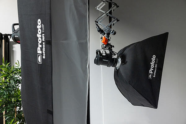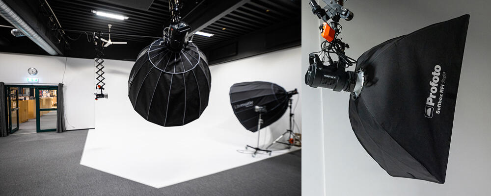 Vi har utstyrt studioet med 4 stk Profoto D2-lamper samt 1 stk Elinchrom 500. I studioet har du tilgang på en rekke forskjellige lysformere. Fast på Profoto-lampene har vi Profoto RFI 2x3”, 1x6”, 1x4” og 5” Octa. Med skinnesystemet i taket som holder 3 lamper blir det enkelt å flytte lys der du ønsker. Vi har den siste Profoto-lampen på en bom slik at lyset kan settes rett over motivet. På studiolageret har vi enda flere lysformere, deriblant beauty dish og zoom-reflektorer, så ta kontakt om det er noe spesifikt du ønsker å ha på lampene når du kommer.