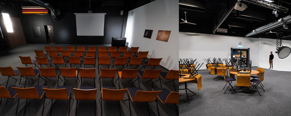 - Lyd- og lyssystem og projektor/lerret i foredragsdelen av salen