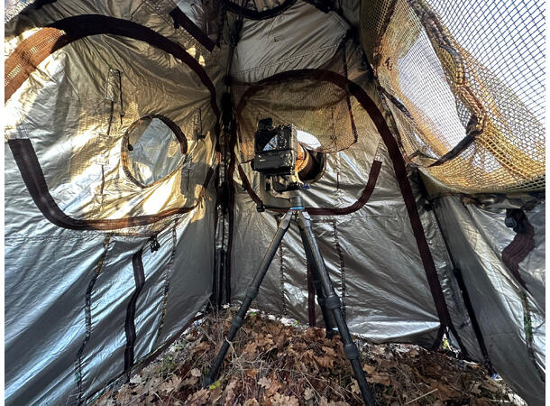 Disse kan tilpasses ut i fra behov hvor synlig du skal være og hvilke høyde du ønsker å fotografere fra. Det åpnes veldig enkelt ved å trekke i en snor og teltet åpner seg på samme måte som en paraply. Teltet har 2 ventilasjonsluke som kan lukkes og åpnes.