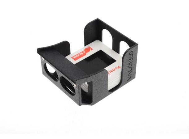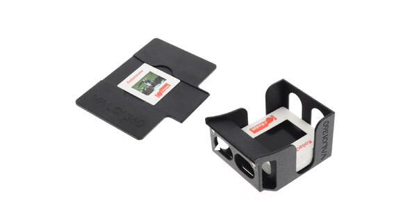 En holder for å skanne standardmonterte lysbilder effektivt og med høy kvalitet ved bruk av et digitalkamera-skanningsoppsett. Kompatibel med VALOI 360-systemet.